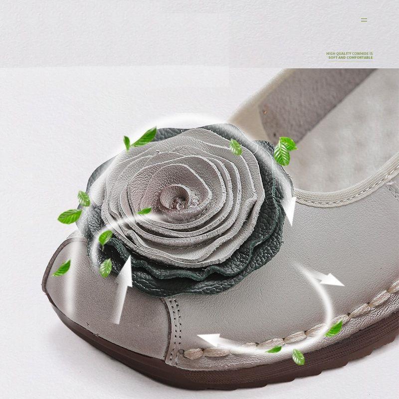2025 Spring luxury cowhide leather shoes woman handmade flower flats retro wedged loafers ladies chic soft red dressy moccasins