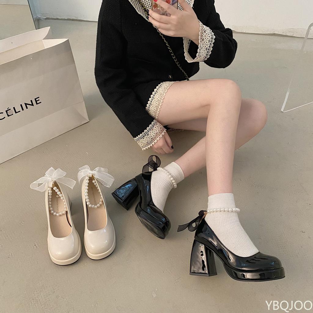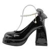 French pearl Women's high heels Mary Jane shoe Bow buckle thick heel shoes Ladies sexy elegant banquet shoes Mujer De