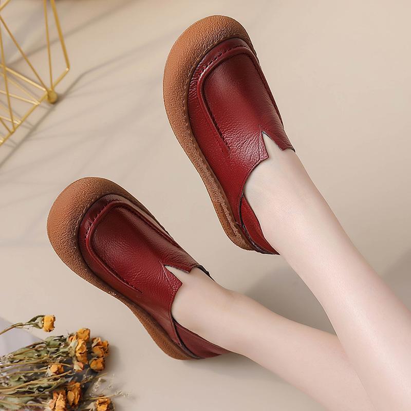 New V cut cow leather shoes for women luxury wide toe ballet flats ladies vintage slip on roman shoe top quality moccasins