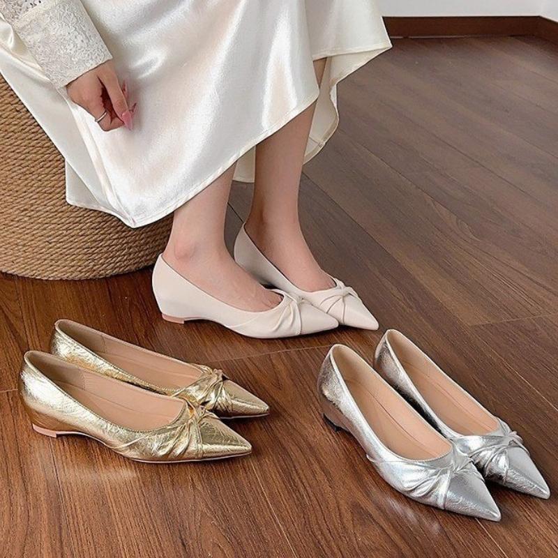 Pointed Shoes Women Summer Soft Sole 2025 New Women's Shoes Shallow Mouth Scoop Shoes Flat Heel Solid Color Leather Flats