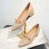 Inner height-increasing women's shoes bow-tie micro-open-toe thick-heeled single shoes women's 2025 new French pointed shallow-mouth high heels