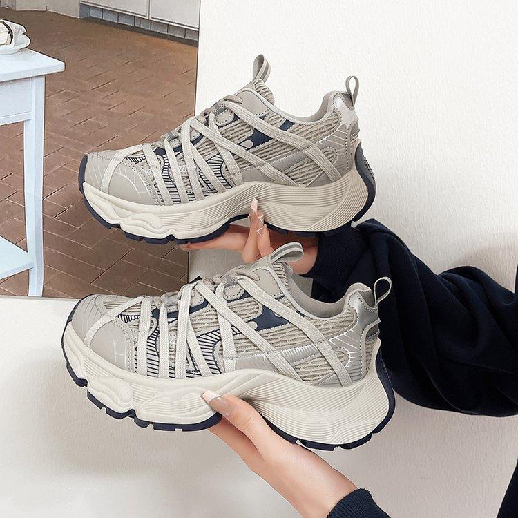 European station mesh thick-soled dad shoes women's 2025 spring new heightened breathable round head niche sports and leisure shoes