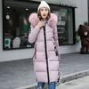 Podzimní a zimní dámská dlouhá módní teplá bunda s kapucí a kožešinovým límcem, odolná proti větru