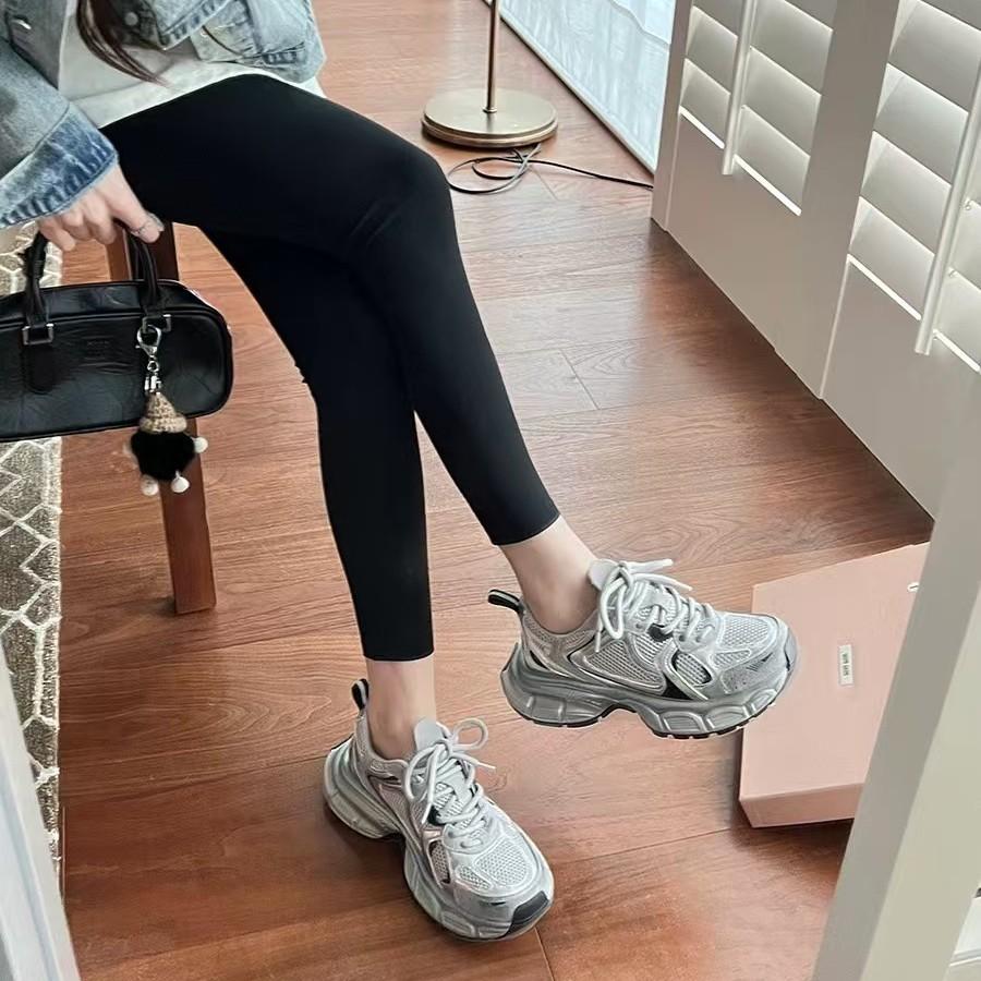 Leather thick-soled heightening dad shoes for women 2025 autumn and winter new Korean version breathable casual versatile sports shoes for women