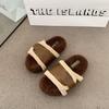 Premium thick-soled fluffy slippers women's 2025 autumn wear French retro casual flat-bottomed velvet half-drag cotton shoes