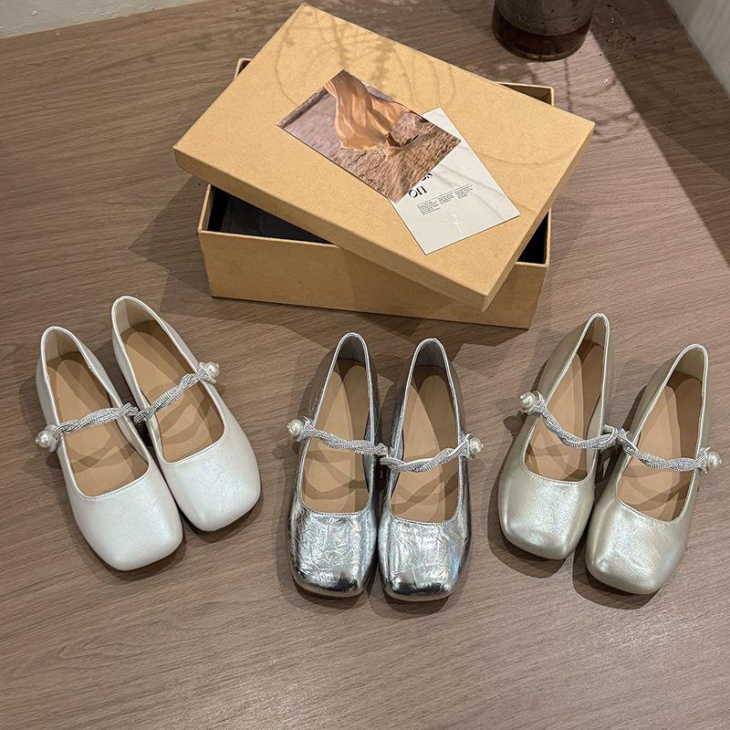 French flat bottom light mouth single shoes women's 2025 new spring and summer with skirt Doudou shoes Mary Jane silver small leather shoes