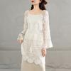 T-Shirt Women Knitting Lace Long Sleeve O-Neck Hollow Summer Style Basic Tops Tees Loose Clothing