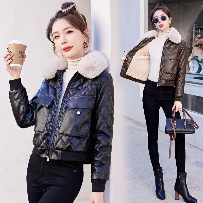 Leather jacket jacket women's short winter new fashion small locomotive clothing with cotton leather jacket small cotton clothing