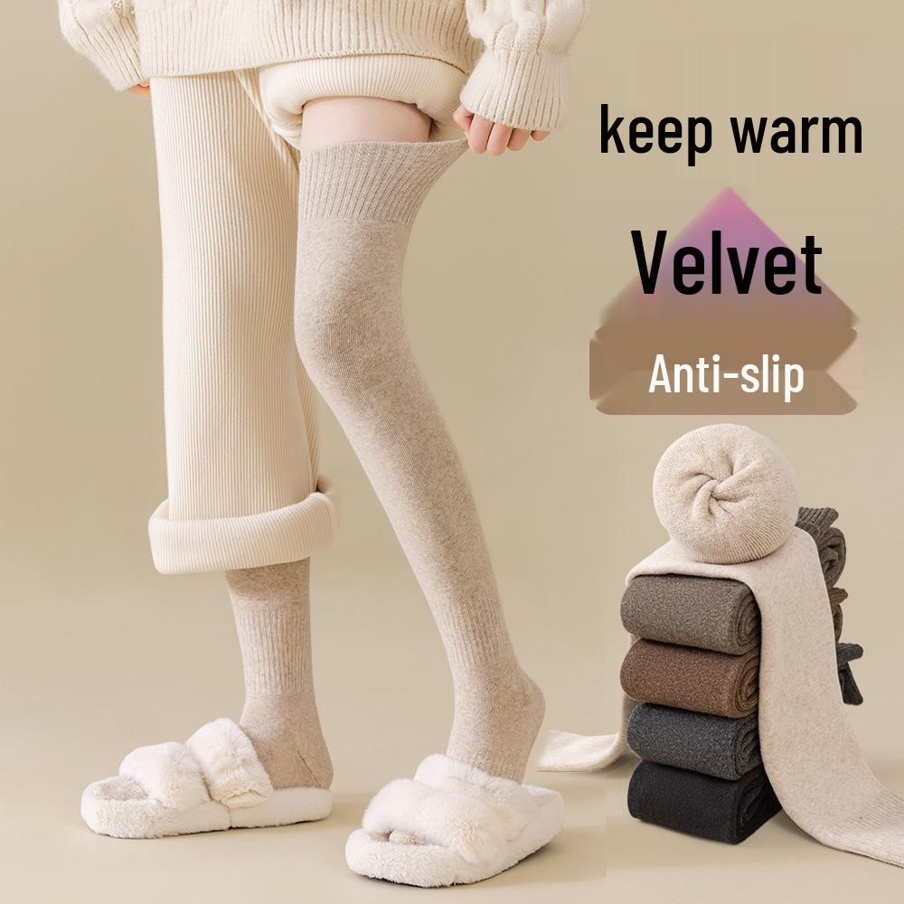 2025 Autumn/Winter Women's Fleece-Lined Over-the-Knee Socks – Warm, Thick, Terry Cotton.