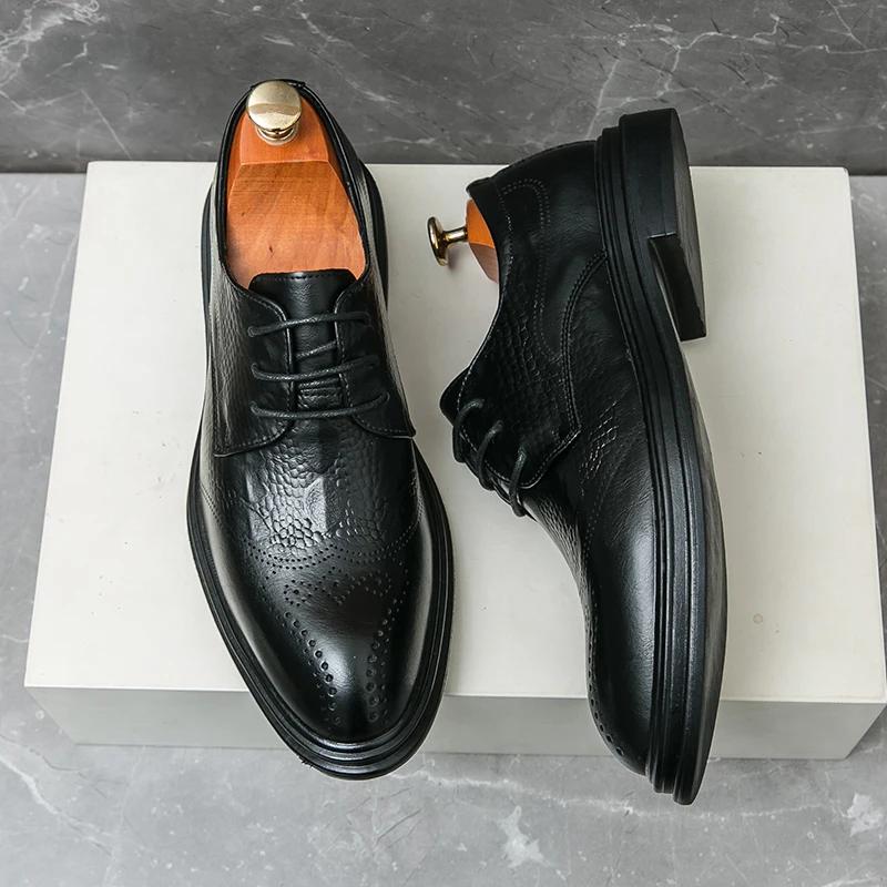 Men's Brogue Shoes Pointed High-end Banquet Dress Man Mens Shoes Leather Business Casual Shoes for Men Versatile