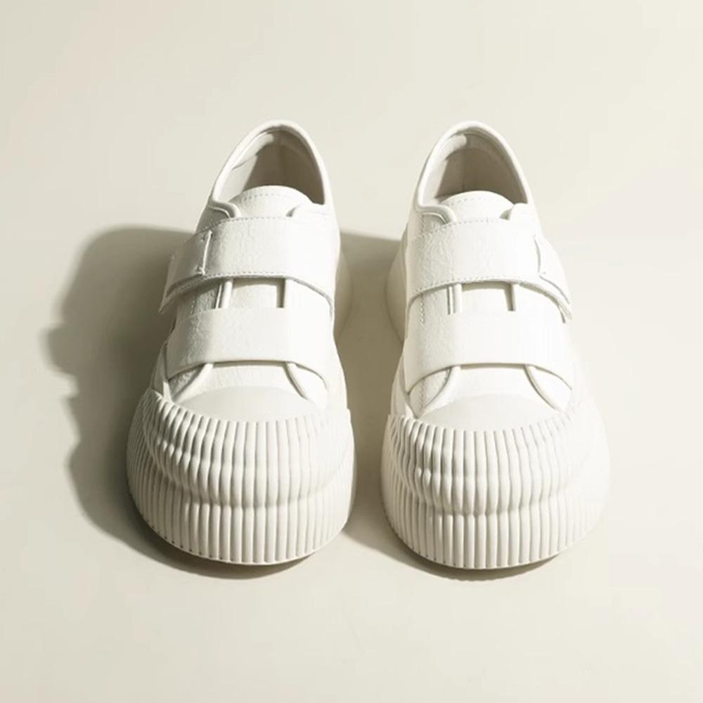 Internet celebrity same spot sneakers platform Velcro cookie shoes women's leather retro casual board shoes little white shoes women