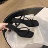 Sheepskin version~ Leather French strap high heels fairy style square head thin cool slippers women wear temperament sandals