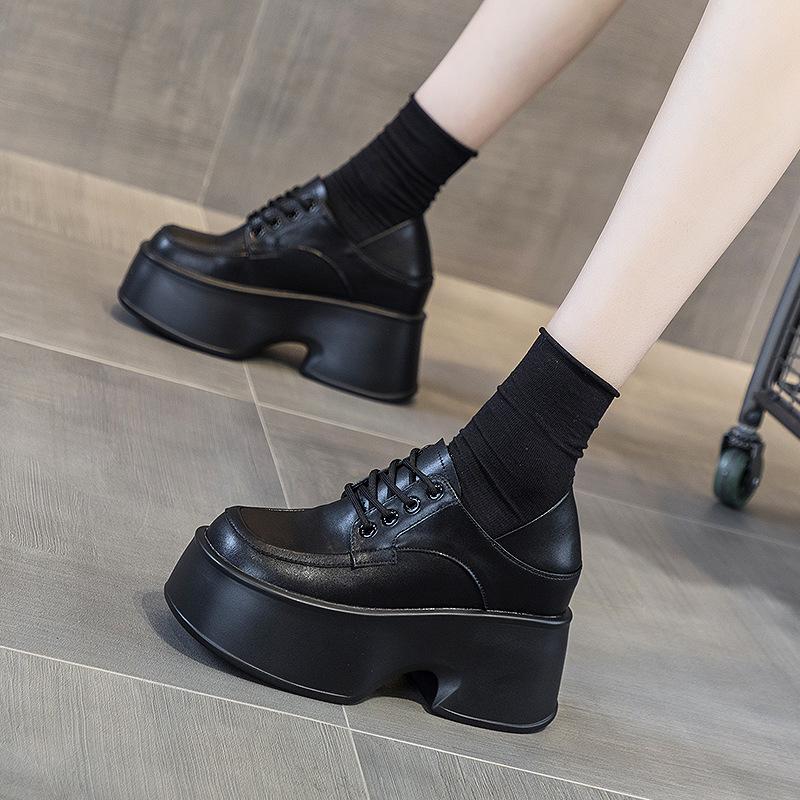 British style small leather shoes two wear women's spring 2025 new retro black and white lace-up loafers platform versatile tide