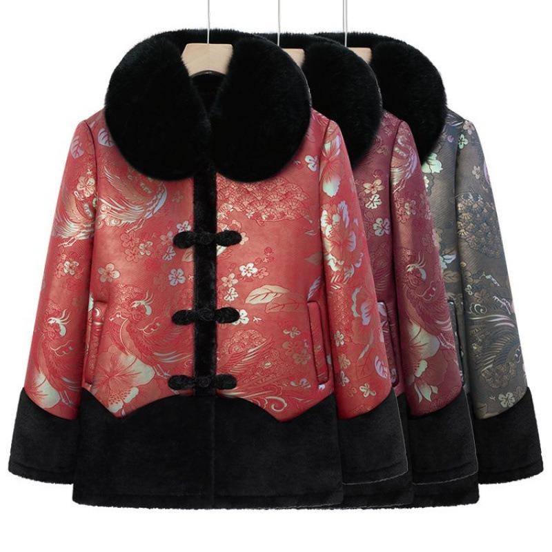 Warm fur collar coat, winter plush thickened coat, women's clothes