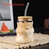 Sklenice na pití s bambusovými víčky a skleněnou brčkem 15oz Sada skleněného nádobí Skleněný tumbler na ledovou kávu Džus Nápoj Mléko