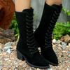 Large size suede high tube cross-strap fashion boots autumn and winter new pointed square but knee women's boots