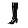 high boots pointed patent leather thick heel high heel side zipper knee boots nightclub dance performance boots