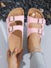 Women's Wooden Bottom Flat Sandals Summer Spring New Arrival Large Size Beach Slippers Comfortable Casual Slip-On Shoes