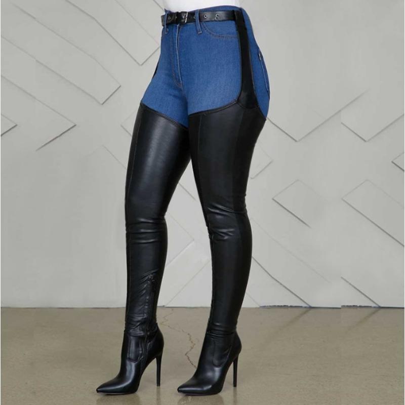 Černé kozačky nad koleno Velká velikost 46 Sexy dámské boty Přezky na opasku Jehlový podpatek Kozačky nad koleno Zima 2025