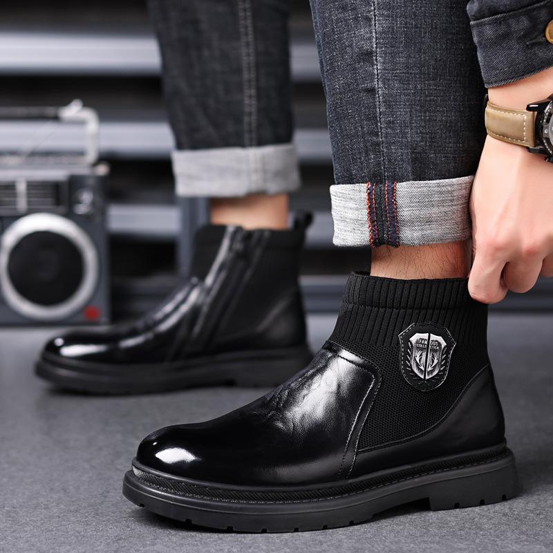 Retro kotníkové boty z pravé kůže a sametu pro muže, pletené, na zip, pánské teplé boty, designové boty Chelsea s měkkou podrážkou pro muže