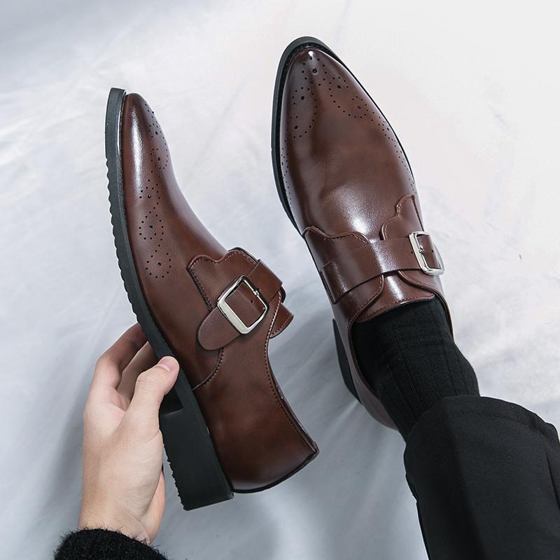 Luxury Men Dress Shoes High-quality Leather Man Shoes Wedding Office Brogue Derby Shoes Big Size Business Social Loafers No Lace