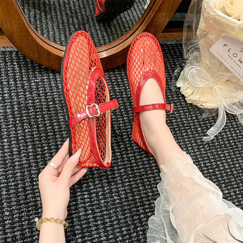Women Sandals New Flat Soft Soled Mary Jane Shoes for Women Mesh Breathable Versatile Sandals Women Sandalias De Mujer