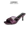 Women's High Heel Slippers Bow Tie Rhinestones Satin Material Shoes Women Sexy Dress Summer Models Sandalias De Mujer
