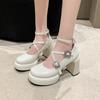 2024 New Hot Selling Solid Color Fashionable Square Heel Rhinestone Buckle Women's Heeled Single Shoes Banquet Party Zapatos