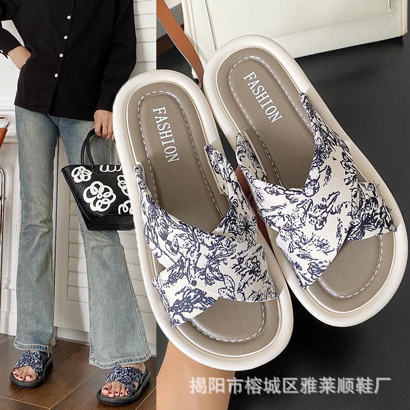 Fashion Chinese Style Flat-Bottomed Womens Slippers Summer Wear 2025 New High-End Cross With Beach Sandals For Women Zapatillas de mujer