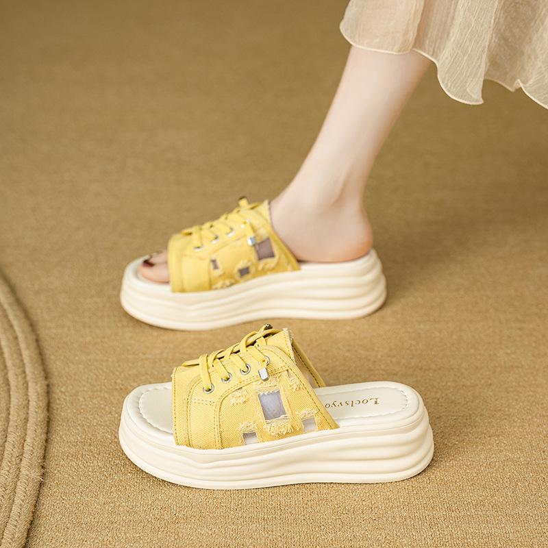 Módní cool pantofle na silné podrážce Dámské 2025 Léto Nové Módní Zesilující Ležérní Sandály Venkovní Ležérní Plážové Boty Ženy