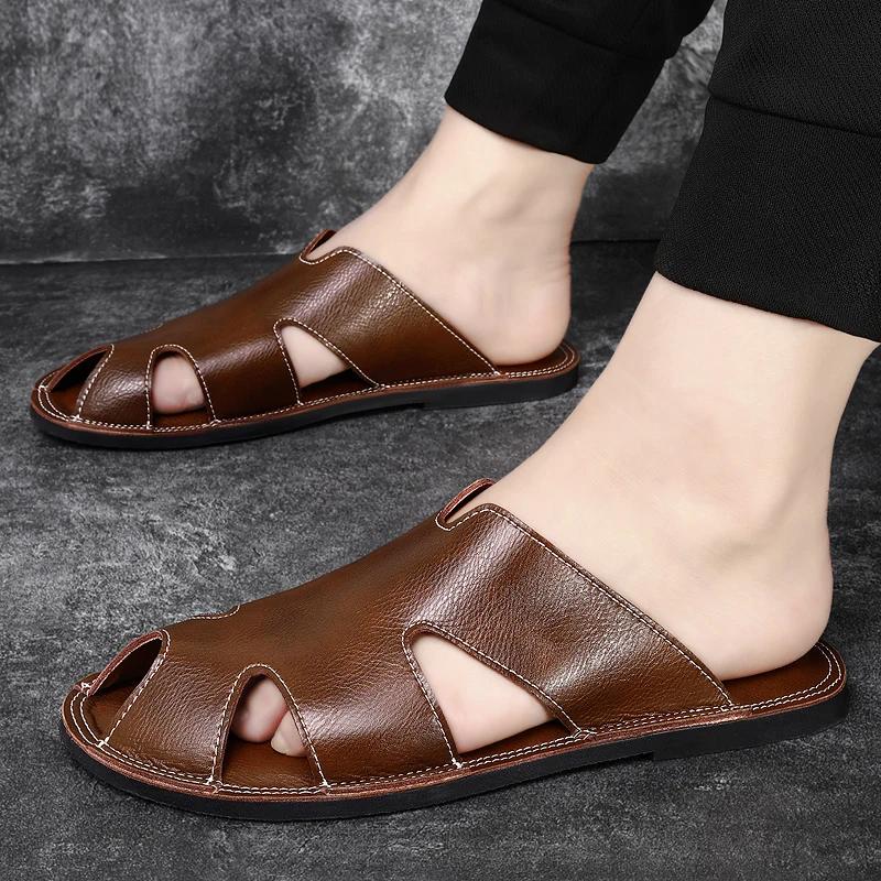 Fashion Hot Sale Flip-flops Quick Dry Beach Flats Men's Casual Leather Slippers New Design Male Half Drag Versatile Ultra-light Sandals