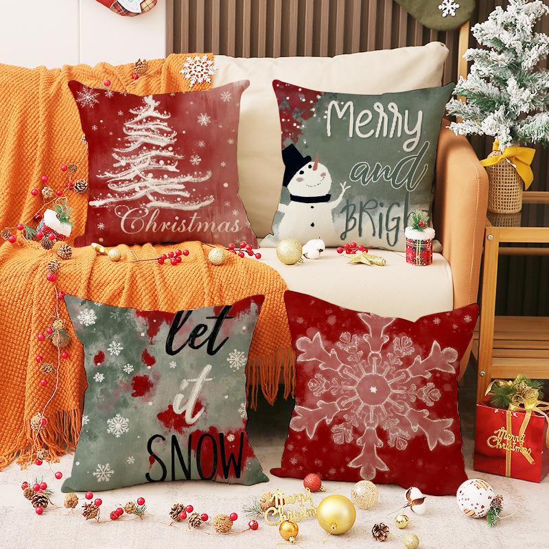 Hand-painted New Christmas Pillow Cover Linen Printed Snowman Cushion Simple Versatile Home Decoration Combination Pillow Cover