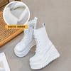 Martin boots women's platform mid-tube short boots 2025 autumn and winter new leather boots solid color simple side zipper fashion shoes