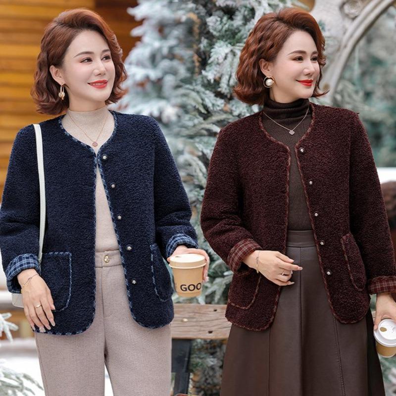 Women's winter thermal round neck granular fleece jacket short versatile top women's