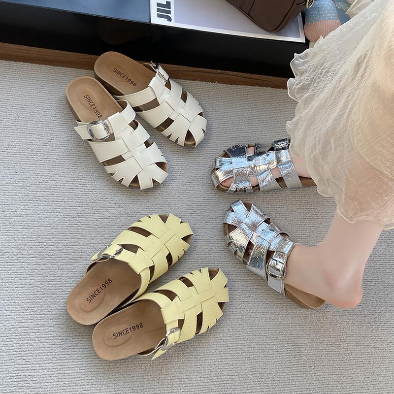 Large size women's shoes 41-43 silver hollow bag head half slippers female summer wear fashion fairy cool slippers Birkentow