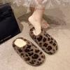 Large size women's shoes 41-43 wide fat feet French leopard print fluffy shoes women's autumn and winter Internet celebrity casual bag head half s
