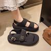Large size women's shoes 41 to 43 wide fat feet versatile platform Velcro sandals women's summer fashion one-word heightening beach shoes