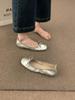 With skirt fairy style silver soft leather soft-soled grandma shoes, one pedal, light mouth ballet shoes, gentle evening single shoes