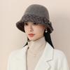 Hat Autumn and Winter Middle-aged and Elderly Mother Hat Bow Women's Bucket Hat Knitted Wool Bucket Hat