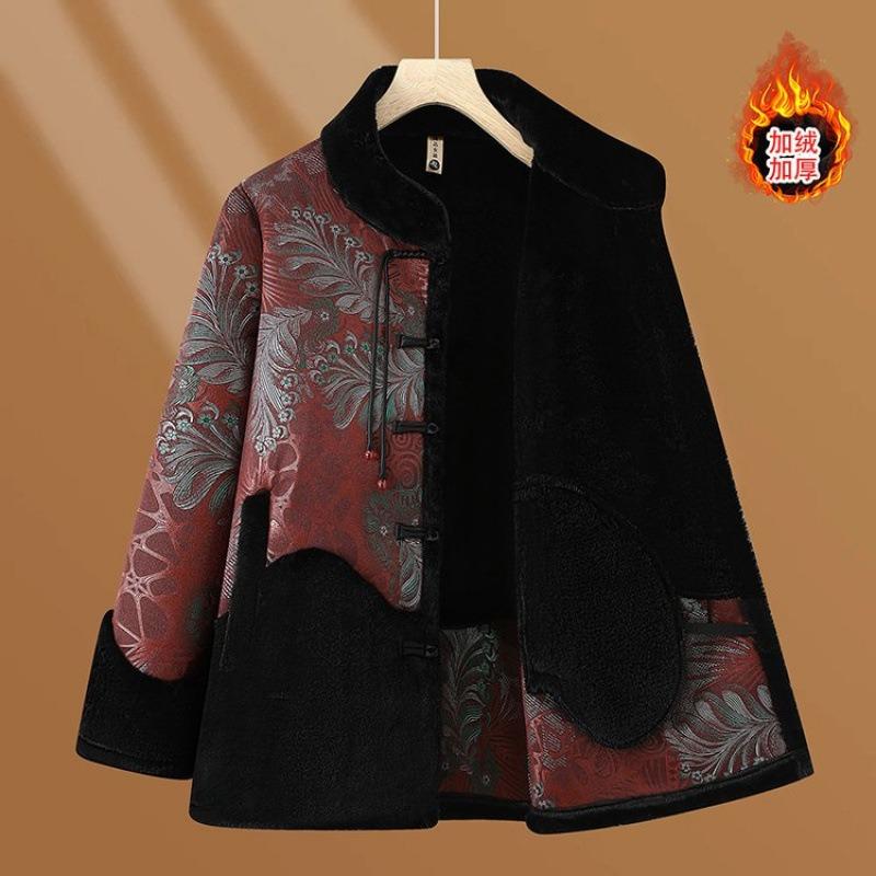 Old lady winter woolen coat grandma fur integrated top old man Tang suit velvet clothes