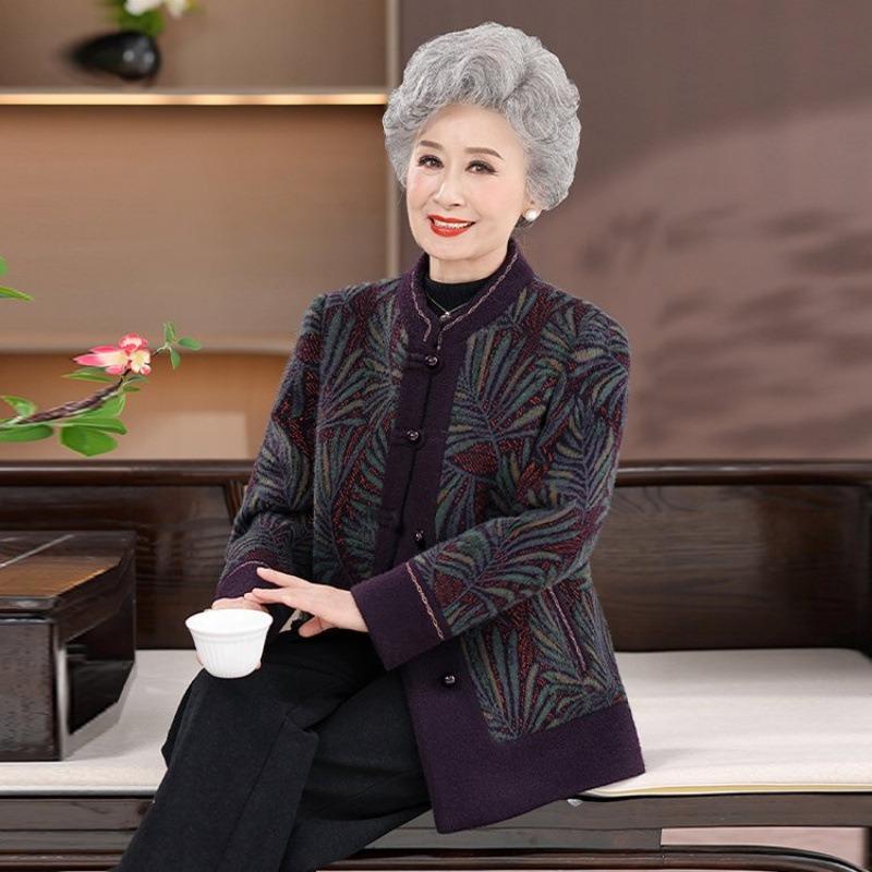Grandma wear autumn and winter warm coat year old 0 middle aged female mother spring and autumn top elderly festive clothes