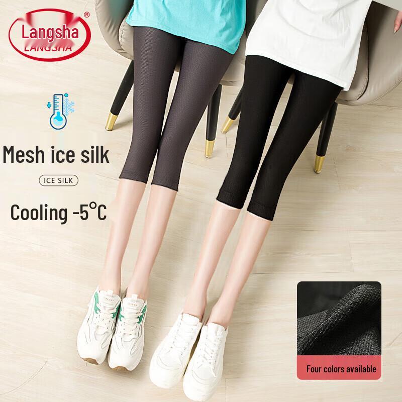 Langsha Women's Ice Silk Slim-Fit Capri Leggings