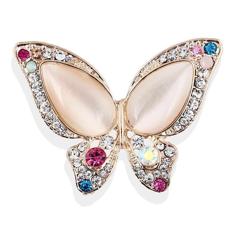 Colored Diamond Cat's Eye Butterfly Brooch Realistic Simple Stone Design Women's Fashion Temperament Versatile Daily Corsage Pin Jewelry