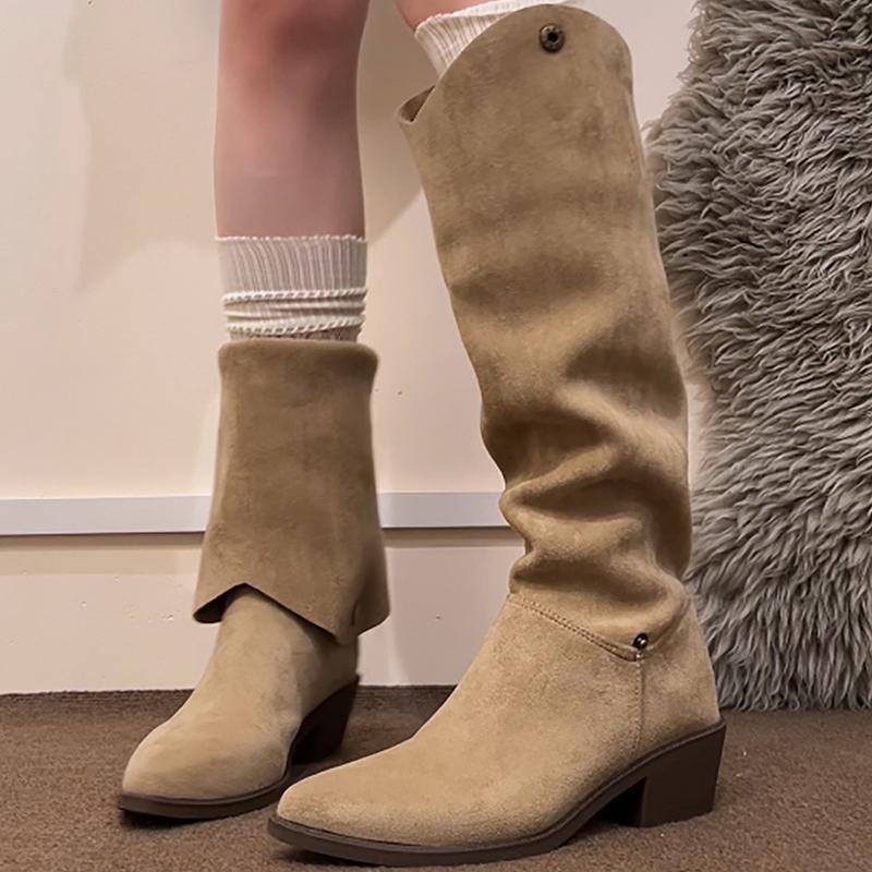 Fashion Vintage Design Women Knight Boots Fashion Pointed Toe Long Booties 2025 Autumn Winter Shoes Zapatos De Mujes