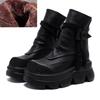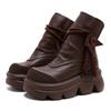 Móda GKTINOO Ručně vyráběné kozačky do půl lýtka Platforma Dámské Pravá kůže Krátké kozačky Kulatá špička Zvyšující výšku Silná podrážka Dámské boty