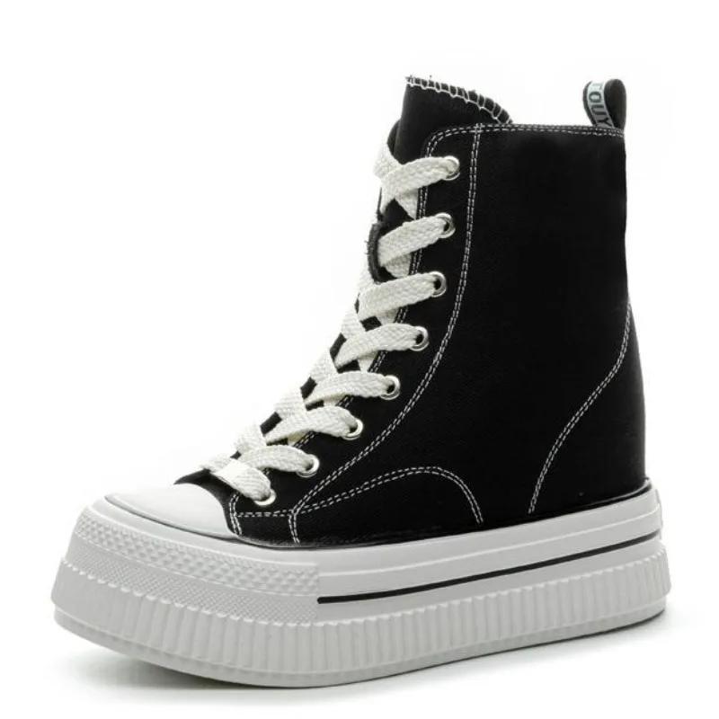 Fashion 13CM Women's Canvas High Top Sneakers Casual Lace up Sneakers For Woman Spring Autumn Shoes Winter Warm High Heels Sneaker Shoes