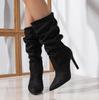 Móda 10,5CM Plisované Špičaté Dámské Kozačky do Poloviny Lýtka Podzim Zima Módní Stručné Jednobarevné Nazouvací Tenké Vysoké Podpatky Kozačky Velikost 42