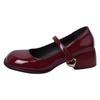 Módní dámské červené vysoké podpatky boty Mary Jane dámské 2025 jaro nové kulatá špička robustní platforma lodičky žena PU kůže gotické jediné boty