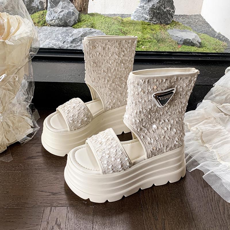 Módní 8CM Duté Platformové Ploché Sandály Ženy Bling Punk Boty Ležérní Letní Kozačky Designové Mokasíny Trend Sport ZIP Sandalias Mujer