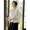 TUHUANG Women's Pure Wool Ribbed Sailor Collar Cardigan Sweater